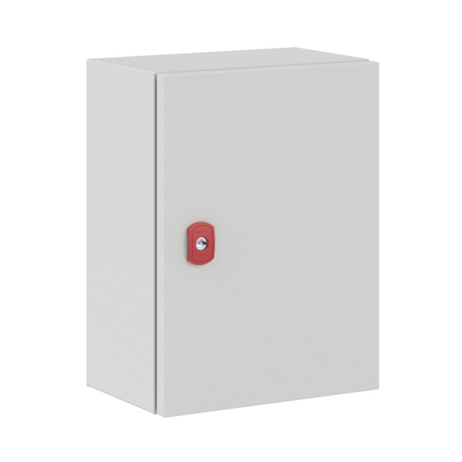 Сварные корпуса ST входят в линейку "RAM block". Эту серию отличает высокая ударопрочность (IK 10) и устойчивость к механическим повреждениям. Навесные корпуса ST со сплошной дверью используются для систем автоматизации технологических процессов. Корпуса обеспечивают размещенным внутри устройствам надежную защиту. Двери таких корпусов изготавливаются из металла толщиной 1,5 мм, а сам каркас – из металла толщиной 1,2 мм. На внутреннюю сторону двери наносится покрытие из вспененного полиуретана, который повышает качество герметизации. Загиб кромки корпуса предотвращает попадание во внутреннее пространство шкафа влаги и мусора, а производственные отверстия имеют специальные заглушки, благодаря чему достигается степень пыле- и влагозащиты корпуса – IP 65/IP 66. Трехступенчатая автоматизированная система окрашивания обеспечивает корпусам прочное покрытие, устойчивое к сколам и царапинам. По умолчанию в двери устанавливается замок под ключ с двойной бородкой 3 мм. Шкафы ST от ДКС отличаются сейсмоустойчивостью и вибростойкостью. Корпуса могут использоваться совместно с аксессуарами CE. Маркированная монтажная плата из оцинкованной стали толщиной 1,8 мм позволяет размещать внутри корпусов даже тяжелое оборудование. Габариты корпуса: высота - 400 мм, ширина - 300 мм, глубина - 200 мм.