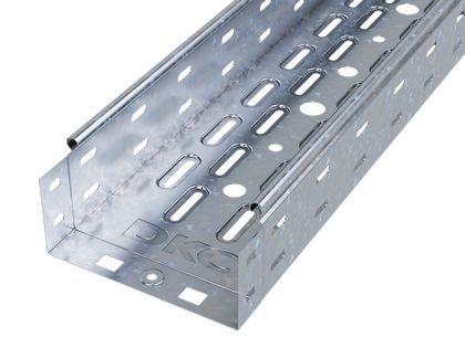 Перфорированные листовые лотки ДКС применяются для прокладки кабеля как в помещении, так и на открытом воздухе. Лотки отличаются высокой несущей способностью – подформовка, производимая при производстве этой продукции, создает дополнительное ребро жесткости, что увеличивает несущую способность системы до 54%. Перфорация сокращает вес конструкции. В лотках имеются отверстия для отвода кабеля диаметром 11 мм, 17 мм, 21 мм. Степень пыле- и влагозащиты перфорированных лотков – IP 10 при использовании крышек, входящих в состав системы. Метод соединения "мама-папа" применяемый для системы, существенно сокращает время монтажа и создает непрерывный контур. Конструктив листовых лотков ДКС предупреждает повреждение кабеля при прокладке.