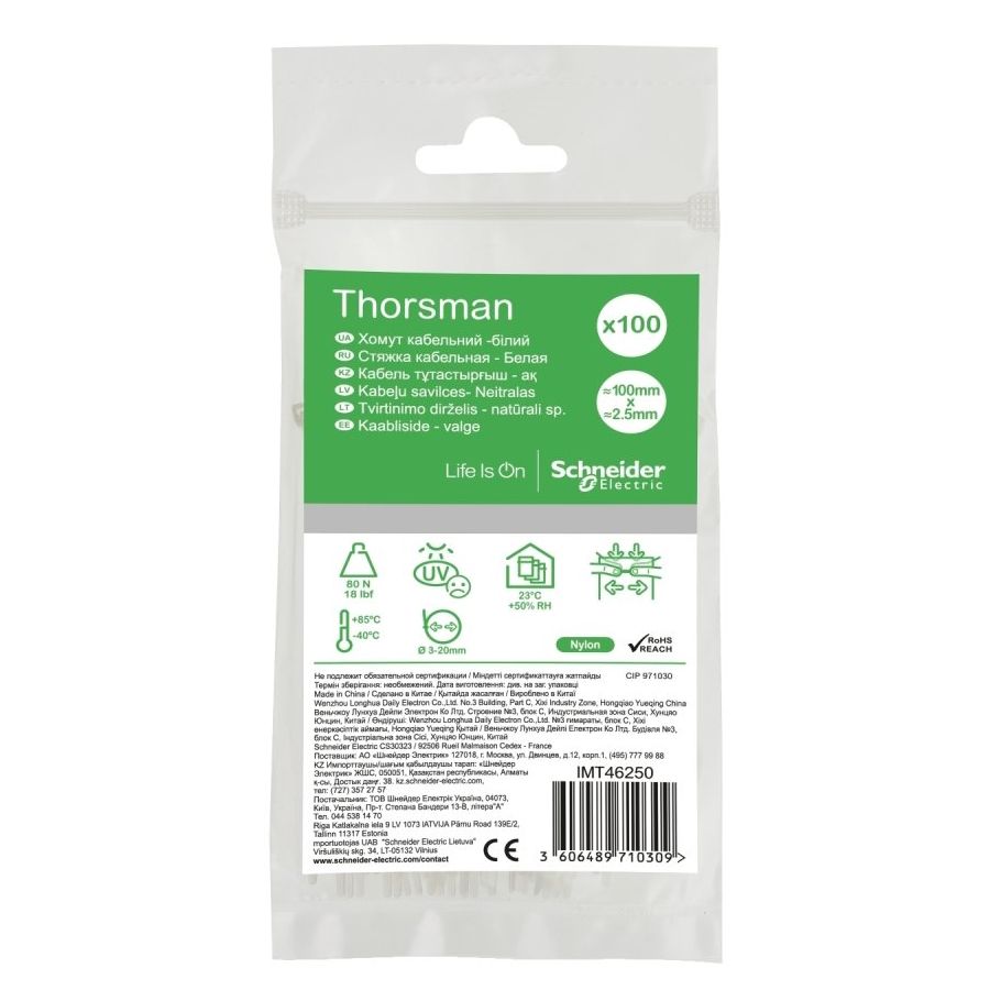Хомуты нейлоновые Schneider Electric 2,5x100мм БЕЛЫЕ (100шт) IMT46250