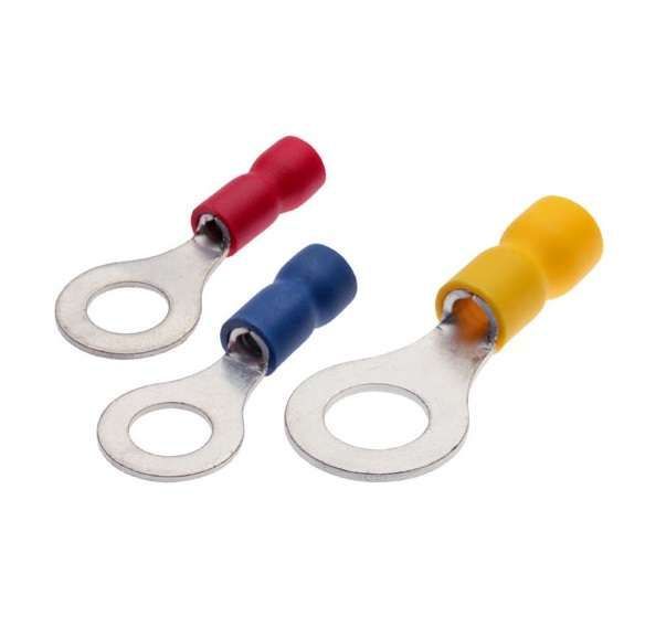 Наконечник кольцевой НКИ 6.0-8 КВТ 47483 предназначен для монтажа гибких многопроволочных жил сечением до 8 кв.мм, на напряжение до 690 В. Изготовлен из меди, с изолирующей манжетой из сшитого полиэтилена, обеспечивающей непрерывный и безопасный изолирующий контур.