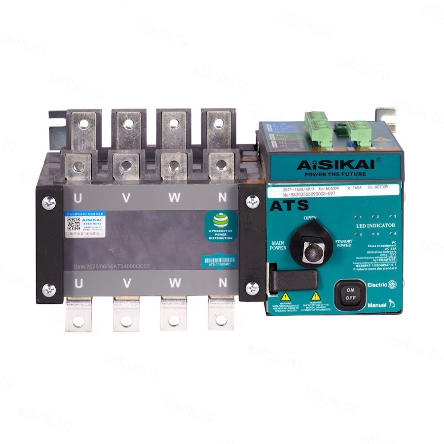 Реверсивный рубильник АВР AISIKAI SKT2 400W/160A/4P SKT2-160A4P